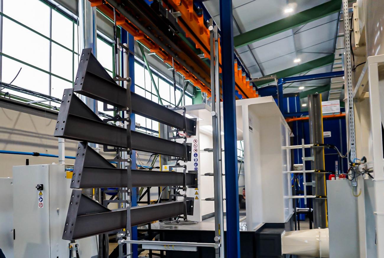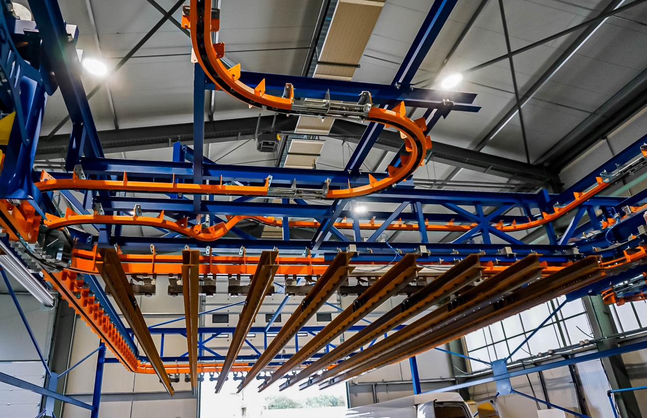 The overhead conveyor has a total track length of 243m and has a drop-section with a 15m long traverse to load the heavy products (up to 3000kgs) that Dugue handles. The oven and coating solutions were provided by ESTEE Coating Solutions. We are proud to work in close partnership with our trusted partners to ensure that we deliver to the customer's requests
