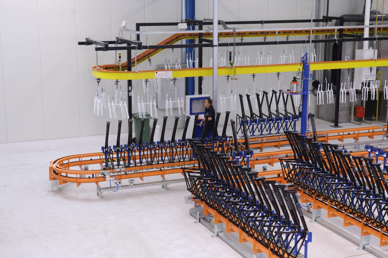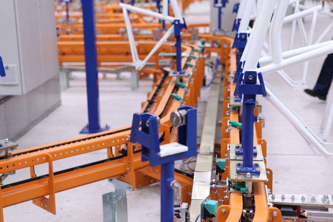 The F1 Power and Free floor conveyor system is based on the inverted version of our T1 Power & Free overhead conveyor. Since the conveyor chain is located below the free track and the product carrier, the risk of contamination to the product being carried is minimal.
